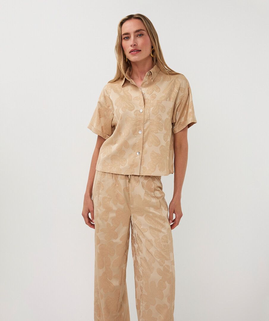 Blouse jacquard leaves